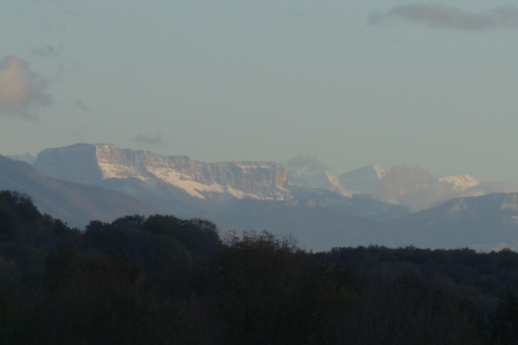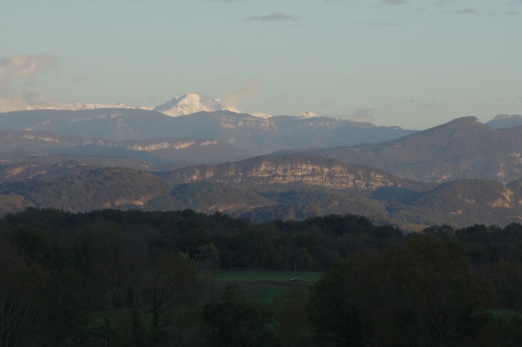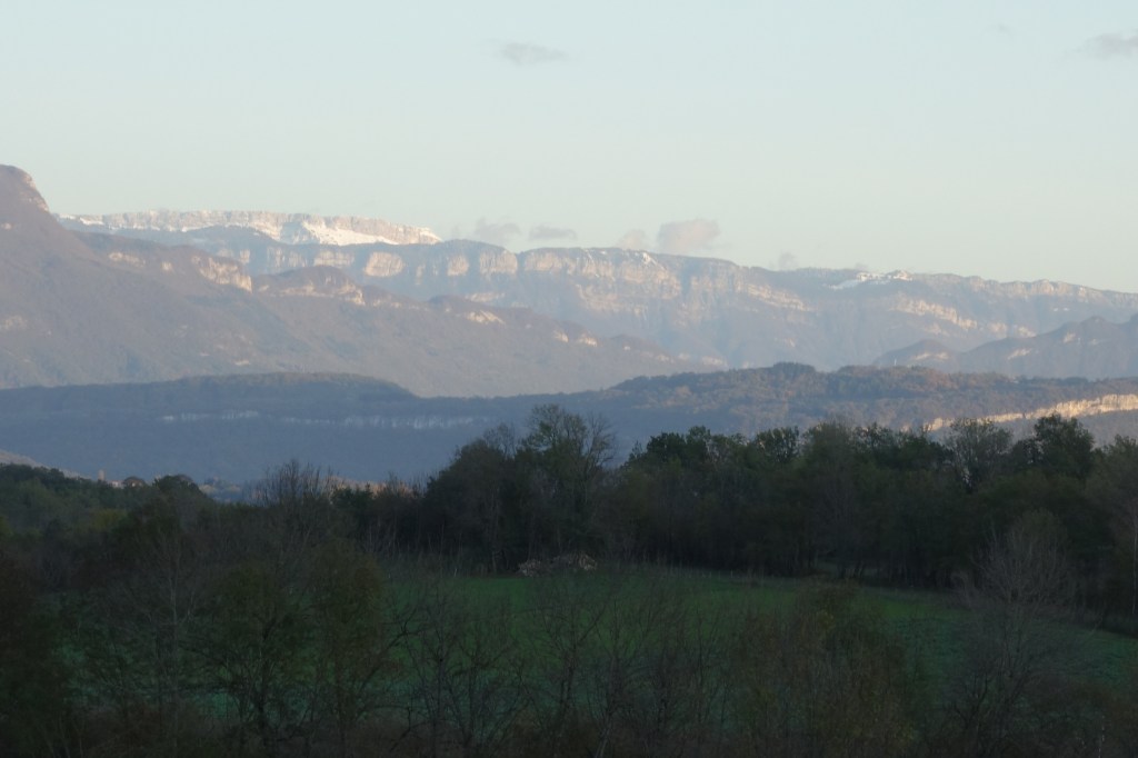 Cette fois-ci, ce n’est pas dans le Bugey que je vous emmène, mais à Voreppe, pas loin de Grenoble, en Isère. J’ai pu photographier les montagnes alentours, en l’occurrence les massifs de la Chartreuse et le Vercors (+ Belledonne).