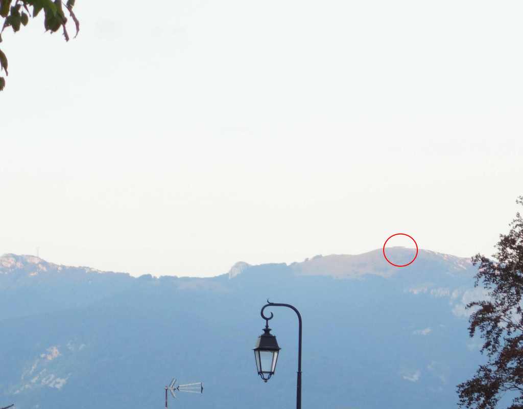 Après re-visionnage de mes photos, j’ai pu constater une chose étrange, concernant celles du Grand Colombier. En effet, vers son sommet se trouve quelque chose d’allongé, ressemblant à un OVNI. Cependant, cet « objet » se trouve dans toutes les photos que j’avais prises du sommet, toutes à des dates différentes. Pourrait-ce être la croix se trouvant au sommet ? (qui, avec la distance, donnerait l’illusion d’être un objet allongé) Ou bien un observatoire ?